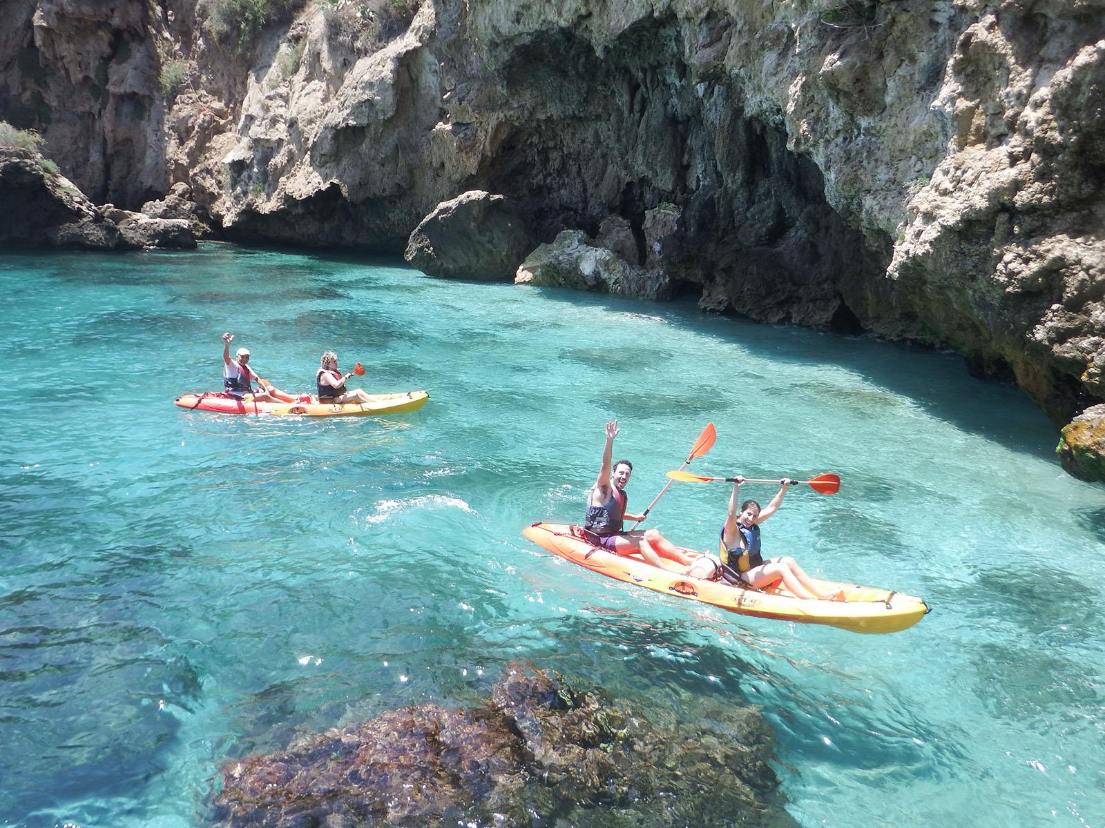 Cette excursion en kayak commence à Nerja à l’embouchure de la rivière “Rio Chillar” à l’est de la cascade de Maro. En passant par le point de vue impressionnant “Balcun de Europa” nous naviguons avec nos kayaks entre de gros rochers, qui donnent au paysage marin un aspect charmant et attrayant, qui s’ouvre large lorsque nous atteignons la célèbre plage de sable de “Burriana” près de Nerja. Cette belle plage se présente à nous avec l’arrière-plan imposant de la Sierra Almijara, d’où se distingue le sommet de l’Alto del Cielo. Puis nous arrivons à la grotte “Cueva del Pirata” (grotte pirate) et à la cascade de Maro, dont l’eau tombe sous une pluie radieuse d’une hauteur remarquable.